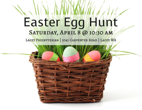 Join us for an Easter Celebration! Kids will hunt for Easter Eggs in age-based areas and groups. Enjoy a cup of coffee, tea or cocoa, and grab a tasty snack! We hope to see you here!
